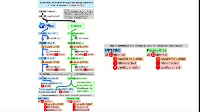 But that’s not all, in the jabbed group 4 people suffered cardiac arrest and 21 people died. 15 people died in the placebo group too but did we hear about it NO. Then they un-blinded the trials and gave all the placebo group the jab destroying the control! They committed FRAUD.