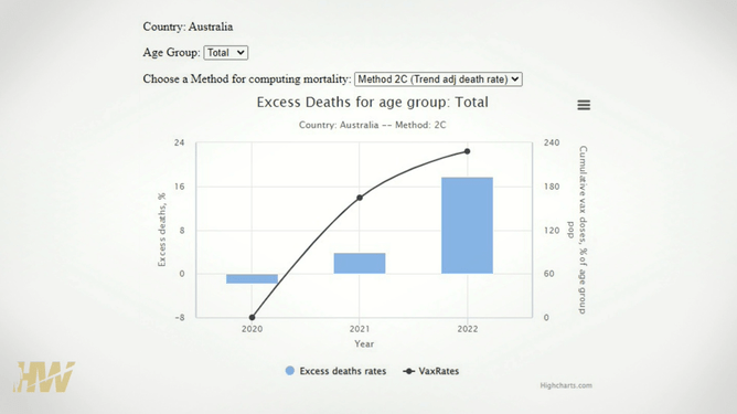And hot off the press out of Australia the expediential rise in deaths from 2020 to 2022